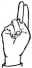 На ћирилици написано КОСТАДИН МЛАДЕНОВИЋ састоји се из 18 слова [?]. Исписано ћириличном једноручном азбуком за глувонеме: